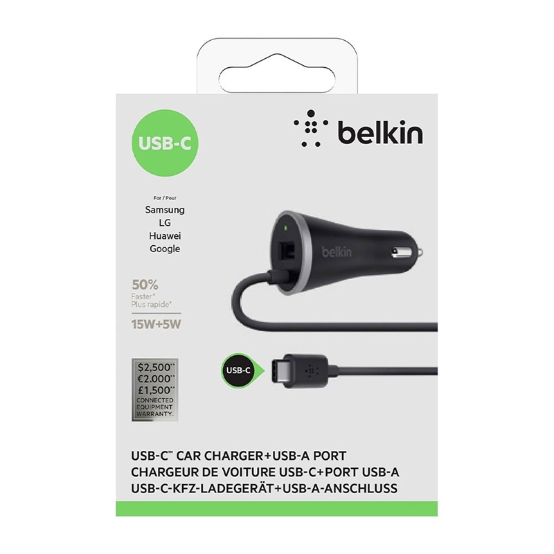 شارژر خودروی USB-C با پورت USB-A و کابل USB-C  توسط یک ضمانت تجهیزات متصل بلکین پوشش داده شده است. اگر دستگاه شما به وسیله یک شارژ الکتریکی در حالی که به درستی به شارژر متصل است، صدمه ببیند، بلکین آن را تا ارزش 2500 دلار تعمیر یا جایگزین خواهد کرد.