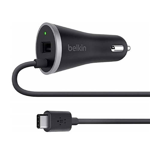شارژر فندکی بلکین با کابل USB-C و پورت USB-A توان 15w+5w