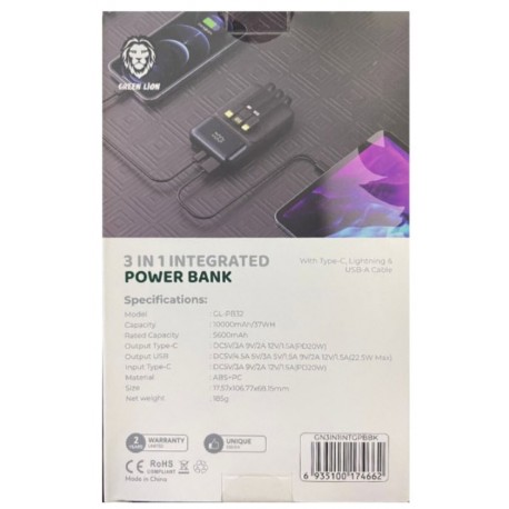 مشخصات پاوربانک Green Lion GL-PB32 3 In 1 Integrated