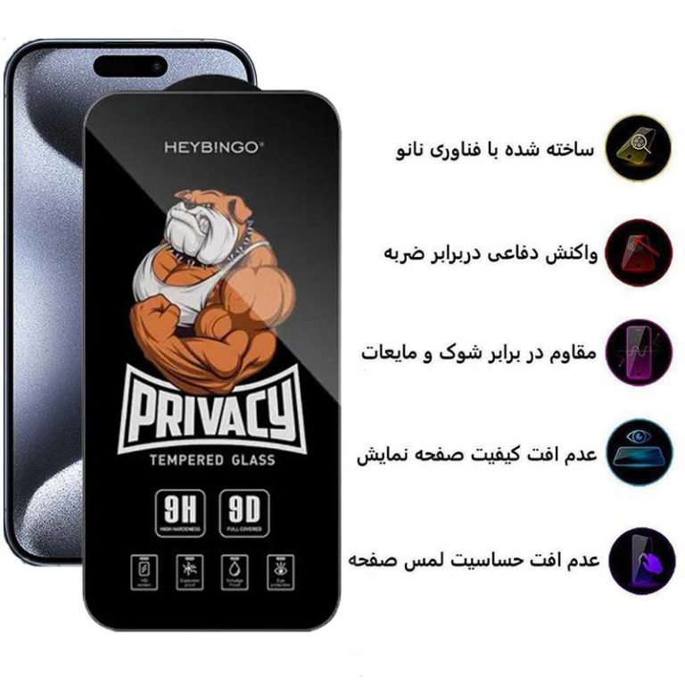 افرادی که به فکر رعایت حریم شخصی خود هستند و دوست ندارند اطلاعات شخصی آنها را کسی نبیند ، می‌توانند از بهترین گزینه لوازم جانبی گوشی‌های هوشمند یعنی گلس پرایوسی استفاده کنند و نه تنها نمایشگر خود را ایمن نگه دارند ، بلکه اجازه مشاهده صفحه را به دیگران نیز ندهند یا نگران به خطر افتادن اطلاعات شخصی خود در مکان‌های عمومی هستید ؟ آیا از دیده شدن صفحه نمایش گوشی توسط افراد کناری خود رنچ می‌برید؟ در این شرایط بهترین راه خرید محافظ صفحه نمایش حریم شخصی اپیکوی مدل Privacy Hey Bingo است.محافظ صفحه نمایش حریم شخصی اپیکوی مدل Privacy Hey Bingo علاوه بر این که از صفحه نمایش گوشی شما مراقبت می‌کند و امکان آسیب به آن را کاهش می‌دهد ، زاویه دید گوشی را محدود کرده و مانع از دیده شدن صفحه نمایش گوشی توسط اطرافیان می‌شود. رد و بدل کردن اطلاعات بانکی و مواردی از این قبیل برخی از کارهایی هستند که شاید در طول روز بارها آن را با گوشی هوشمند خود انجام دهید. از آنجایی که ایمن نگه داشتن این اطلاعات حائز اهمیت است ، خرید گلسی که بتواند حریم شخصی شما را حفظ کند را نباید فراموش کرد.این محافظ صفحه نمایش حریم شخصی اپیکوی از نظر ظاهر مشابه با گلس‌های معمولی است. اما در این گلس از نوعی تکنولوژی استفاده شده است که با محدود کردن زاویه دید ، افرادی که در کنار شما قرار دارند نمی‌توانند نمایشگر گوشی را ببیند. این محافظ صفحه نمایش حریم شخصی اپیکوی مقاومت بالایی دارد.ضد خط و خش است.ضد ضربه است.اثر انگشت بر روی آن باقی نمی‌ماند.نسبت به لمس حساس است؛بنابراین عملکرد گوشی را مختل نمی‌کند.اطلاعات شخصی و حساس شما را امن نگه می‌دارد.زاویه دید محدود دارد.استفاده از فناوری Privacy باعث شده است که از رو به رو یا به عبارتی زاویه 90 درجه بتوانید صفحه موبایل خود را ببینید؛در غیره این صورت صفحه نمایش گوشی به صورت سیاه و تاریک دیده می‌شود.به آسانی نصب می‌شود و هیچ گونه حبابی زیر آن ایجاد نمی‌شود.محافظ صفحه نمایش حریم شخصی اپیکوی مدل Privacy Hey Bingo دقیق است و محل قرار گرفتن دوربین سلفی به خوبی مشخص است.تمام چسب بودن این محافظ صفحه نمایش حریم شخصی اپیکوی مدل Privacy Hey Bingo باعث شده است تا شما بتوانید به راحتی گلس را روی گوشی نصب کنید.این گلس یک انتخاب خوب برای کسانی است که نگران دیده شدن اطلاعات خود هستند.