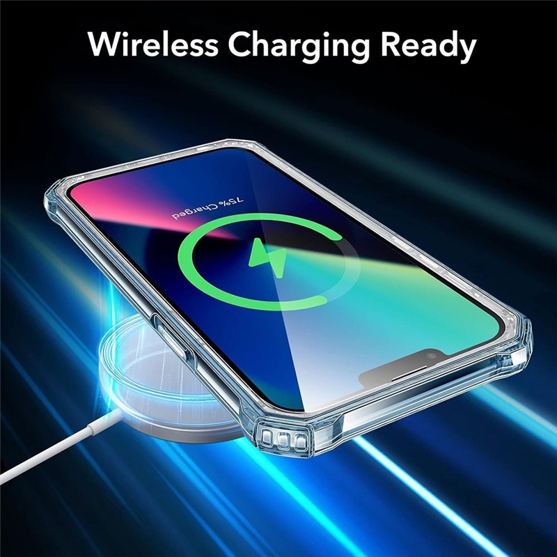 آمادگی برای شارژ بیسیم: این کاور با ارائه محافظت محکمی به گوشی آیفون ۱۳ شما، به شما این امکان را میدهد که گوشی خود را با کاور بر روی شارژر بیسیم قرار دهید. این ویژگی از اهمیت و کاربرد بالایی برخوردار است و کاربران را از هر زاویهای راضی خواهد کرد.