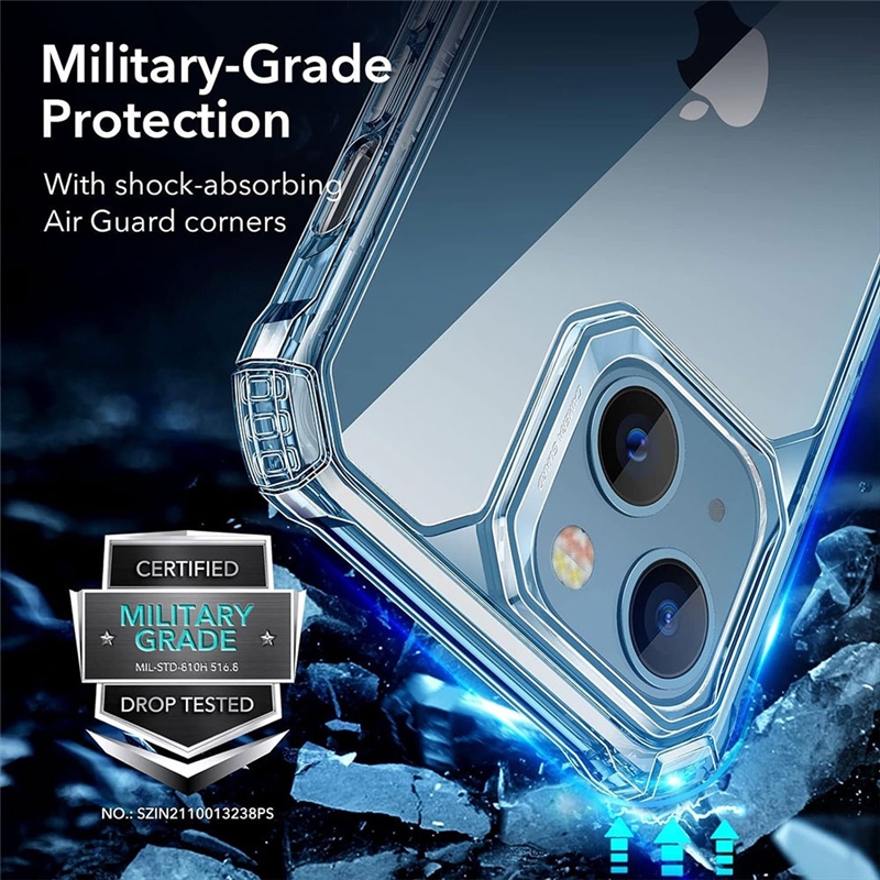 محافظت نظامیمانند: این کاور از استانداردهای نظامی در زمینه محافظت استفاده میکند. با داشتن یک پشته محکم، بامپر انعطافپذیر و گوشههای Air-Guard، این کاور به عنوان یک کاور محافظ کامل برای آیفون ۱۳ شناخته میشود. این محصول با موفقیت تستهای مقاومت و محافظت را پشت سر گذاشته و اطمینان از مقاومت آن در برابر شرایط سخت فراهم میکند.
