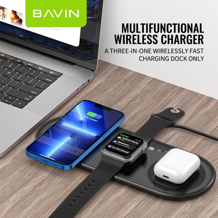 شارژهای وایرلس با توجه به راحتی در استفاده می توانند جایگزین مناسبی برای شارژهای دیواری باشند. باوین تصمیم گرفته تا با طراحی شارژر وایرلس Bavin PC817 یک محصول چند کاره ارائه کند که میتوانید به وسیله آن گوشی، ساعت هوشمند و هندزفری بلوتوث خود را به صورت همزمان شارژ نمایید.