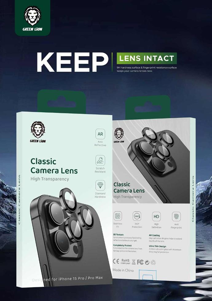 محافظ لنز دوربین برند Green Lion مدل Classic مناسب برای Apple iPhone 15 Pro Max