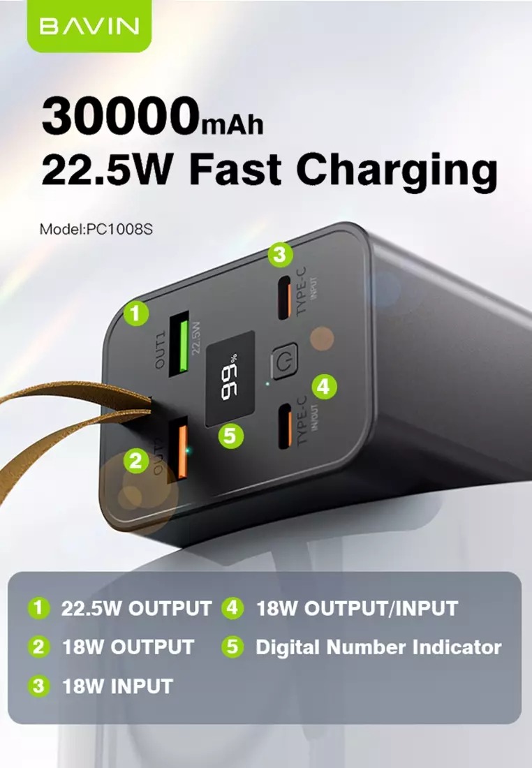 پاوربانک 30000 Bavin PC1008S 30000mAh Power Bank توان 22.5 وات