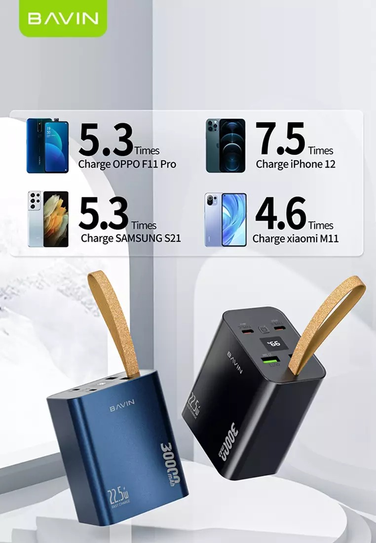 طبق اعلام شرکت باوین این پاوربانک در صورت داشتن شارژ کامل میتواند آیفون 12 را 7 بار، آیفون 8 را 11 بار، OPPO F11 Pro را 5 بار، سامسونگ اس 21 را 5 بار، شیائومی M11 را 4 بار کامل شارژ کند.