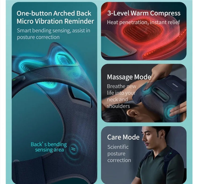 یکی از مهمترین کاربردهای ماساژور شانه و گردن Philips PPM3601BDB/93 این است که کمک میکند شما در هنگام نشستید شانههای خود را خم نکرده یا به اصلاح قوز نکنید. وقتی که حالت مخصوص Care Mode یا حالت مراقبت را فعال میکنید، دستگاه هنگامی که قوز کنید، به شما هشدار میدهد که کمر خود را صاف کنید.