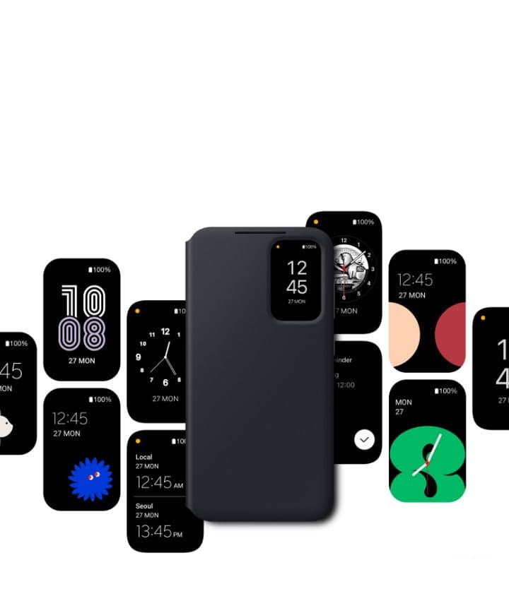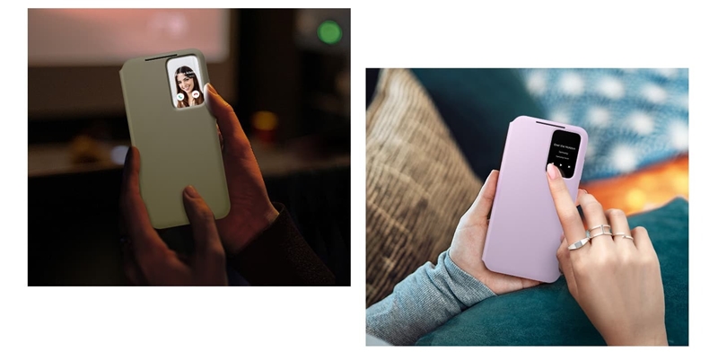 روی درب کیف هوشمند Samsung Galaxy S23 Fe Smart View Wallet Case یک پنجره کوچک قرار دارد که از طریق آن می توانید بدون باز کردن درب کیف بعضی قابلیت ها را کنترل کنید. برای مثال در زمانی که تماسی دریافت می کنید بدون باز کردن کاور کیف سامسونگ S23 Fe Smart View Wallet می توانید نام و شماره تماس گیرنده را ببینید و با سوایپ کردن روی قسمت سمت راست که مشابه یک مانیتور است، به تماس پاسخ دهید یا رد تماس کنید. همچنین امکان انتخاب تصاویر پشت زمینه را برای آن دارید. با فعال بودن صفحه نمایش همیشه روشن (Always On Display)، این قابلیت در پنجره کوچک نیز به نمایش در خواهد آمد.