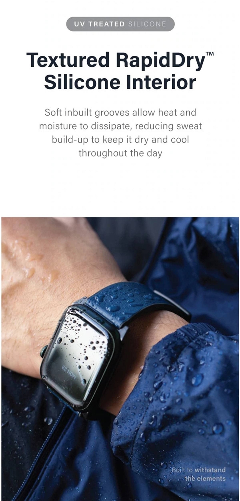 این بند به وسیله یک سگک استیل ضد زنگ قفل می شود و با سایزهای مختلف سازگار است. اما مهم ترین ویژگی سری Straden ضد آب بودن آن است. شیارهای نرم داخلی بند طوری طراحی شده اند که گرما و رطوبت را از بین می برند و باعث عدم تجمع عرق بدن می شوند تا در مدت استفاده از این بند، مچ دست خشک و خنک باشد.