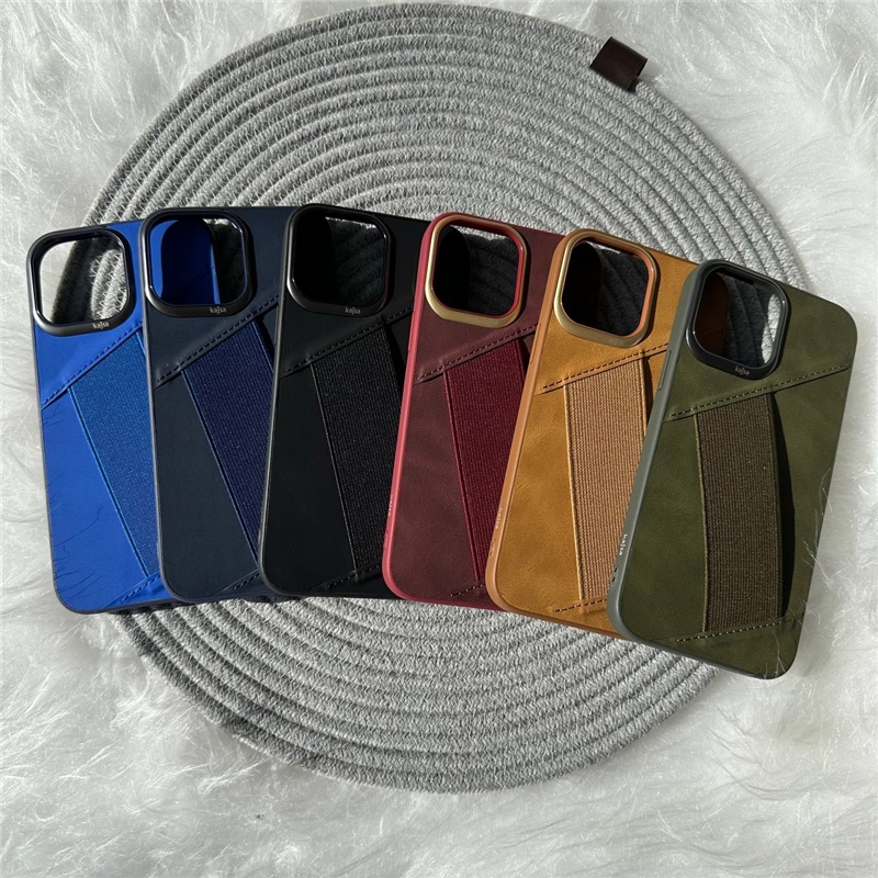 یکی از قاب های زیبا و پرکاربرد، قاب چرمی برند کجسا Elastic Hand Grip مخصوص گوشی های آیفون می باشند که برای محافظت از گوشی آیفون ساخته شده اند.و همچنین با جنس چرم و رنگبندی زیبا هم زیبایی خاصی به قاب داده اند،این قاب ها مقاومت بسیار بالایی دربرابر ضربه دارند و به علت چرمی بودن پشت قاب،رنگ و شکل ظاهری موبایل شما قابل مشاهده می باشد.