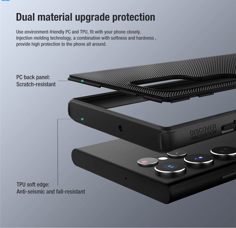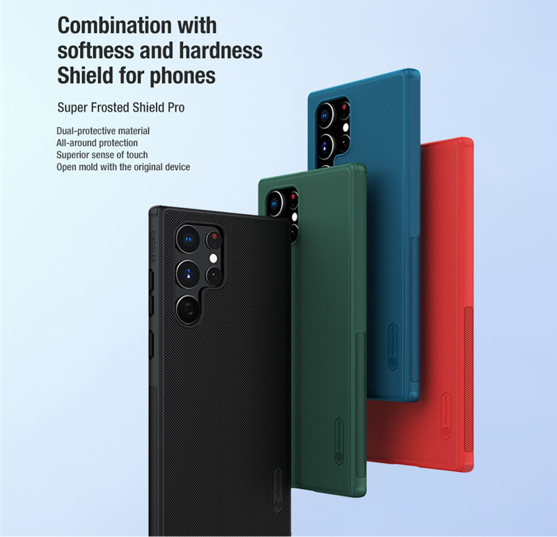 کاور «نیلکین» مدل «Super Frosted Shield Pro» برای گوشی موبایل سامسونگ Galaxy S22 Ultra طراحی و تولید شده است. این محصول با استفاده از پلی‌کربنات ساخته شده و مقاوم است. سطح کاور به‌صورتی طراحی شده که در برابر لغزش و سایش مقاومت دارد. بنابراین در زمان استفاده از گوشی موبایل احتمال لیز خوردن و افتادن دستگاه از دستتان به حداقل خواهد رسید؛ همچنین لایه‌ی رویی این محصول اثرانگشت کمی به خود جذب کرده و مدت زمان بیشتری می‌توان آن را تمیز نگه داشت.محل قرارگیری درگاه‌ها در این محصول به‌طور دقیق اندازه‌گیری شده‌اند تا دسترسی و استفاده از آن‌ها بدون مانع انجام شود. این کاورتمامی سطوح گوشی موبایل را می‌پوشاند و از دستگاه شما در برابر خط و خش محافظت می‌کند. این کاور لبه‌های باریکی دارد و از نمای جلو، تغییر چندانی در ظاهر گوشی ایجاد نمی‌کند؛ همچنین وزن آن کم است تا بدون نگرانی به‌خاطر تغییر وزن و ابعاد گوشی‌تان از آن استفاده کنید؛. این قاب پشت و لبه های گوشی سامسونگ اس 22 الترا را پوشش می دهد و از بروز مشکلاتی قبیل خط و خش و ضربه جلوگیری می کند. کاوری که شیار های موربی دارد که باعث می شود گوشی از دست و از روی سطح به هیچ عنوان لیز نخورد.بنابراین اگر به دنبال محافظی با کیفیت ساختاری بالا هستید قاب نیلکین Samsung Galaxy S22 Ultra مدل Frosted Shield Pro را به شما پیشنهاد می کنیم،نصب و جداسازی این کاور از گوشی سامسونگ اس 22 الترا بسیار ساده و راحت است و محدودیتی در دسترسی به پورت ها و لنز دوربین ایجاد نمی کند. روی دکمه ها برای محافظت بهتر پوشیده شده اند.قسمت پورت ها و رابط های کاربری توسط برش های دقیقی باز است تا کاربر بتواند به راحتی از آن ها استفاده کند،همچنین قاب Samsung Galaxy S22 Ultra در قسمت دوربین پشت ضخامتی بیشتر از جاهای دیگر دارد که این موضوع باعث می شود با قرار دادن گوشی سامسونگ اس 22 الترا دوربین سطح تماس کم تری با سطوح مختلف داشته و از این رو کم تر در معرض خط و خش و ضربه دیدن قرار می گیرد.