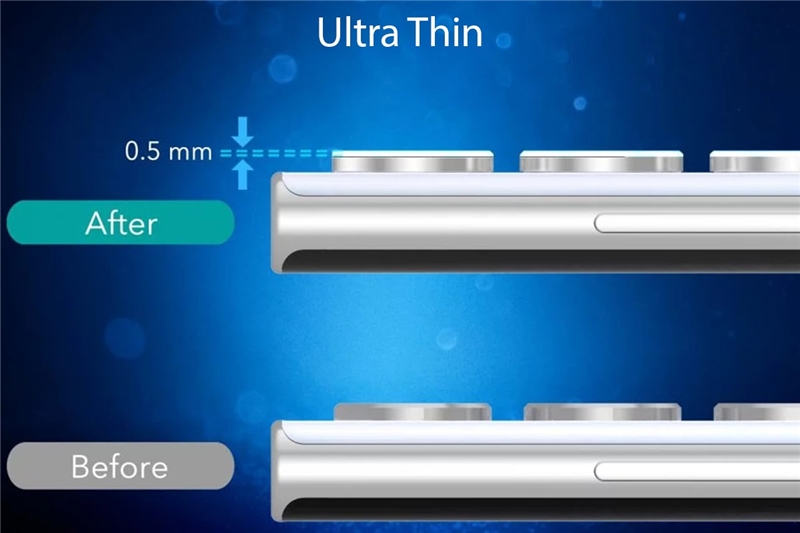 محافظ لنز دوربین ESR سامسونگ S22 Ultra فوق العاده باریک است و تنها 0.5 میلی متر ضخامت دارد. هماطور که در تصویر مشخص است، پس از نصب محافظ لنز بر روی لنزهای دوربین، تغییر سایز بسیار نامحسوس است. همچنین هیچ مشکلی برای استفاده از قاب های محافظ وجود ندارد.