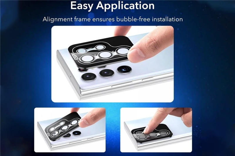 از دیگر سوالاتی که ممکن است برای شما پیش بیاید در خصوص نصب این محافظ لنز دوربین می باشد. ESR برای نصب آسان و راحت این محافظ بر روی لنزهای دوربین Galaxy S22 Ultra یک ابزار نصب آسان که محافظ ها بر روی آن قرار می گیرند، درون بسته بندی محصول قرار داده است که با جایگذاری دقیق ان بر روی پنل لنزهای دوربین، این محافظ بر روی لنزها قرار می گیرد.