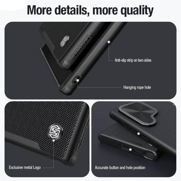 یک ضربه محکم یا یک خراش کوچک ممکن است به بدنه‌ی براق موبایل‌تان آسیب بزند.حتی اگر شدت ضربه بالا باشد،احتمال صدمه به اجزای داخلی موبایل وجود دارد.تنها راهی که می‌توانید از آن محافظت کنید،استفاده از یک قاب محکم است.کاور نیلکین مدلTextured Propگزینه‌ای مطمئن است که به بهترین شکل امنیت موبایل‌تان تامین می‌کند.کاور نیلکین مدلTextured Propبا قالب‌گیری یکپارچه، از مواد سختی چون پلی کربنات و مواد انعطاف‌پذیرTPUتولید شده است. موادPCباعث افزایش مقاومت قاب شده و موادTPUانعطاف بالایی رابه این قاب می‌دهد و جداسازی آسان بدون آسیب رساندن به دستگاه را فراهم می آورد همچنین تعبیه ایربگ در چهار گوشه قاب آن را در برابر ضربه مقاوم ساخته است.استفاده از این مواد در قاب باعث می‌شود گوشی شما از هر لحاظ ایمن باشد و حفاظت کامل360درجه از آن تضمین می‌گردد.نیلکین در ساخت کاور نیلکین مدلTextured Propبایک خلاقیت در طراحی محافظ لنزش، استفاه از آن را برای شما جذاب‌تر و راحت‌تر کرده است.این قاب دارای یک پایه تاشو مخفی برای محافظت از لنز و عملکردهای پشتیبانی است. شما می‌توانید لنز دوربین را به آرامی باز کنید .از آن به عنوان هولدر موبایل استفاده نمایید.دستان شما برای انجام امورتان آزاد است!توجه داشته باشید که هنگام بستن این براکت،لطفا گوشه‌های بالا و پایین رابه طور همزمان فشار دهید تاآن رامحکم ببندید و ازتاب برداشتن لبه جلوگیری شود.کاور نیلکین مدل Textured Prop از مواد با کیفیت و بسیار مرغوبی تولید شده است.فرآیند بافت سه بعدی به طور متراکم باسوراخ‌های کوچک پوشیده شده و این قاب را در برابر عرق مقاوم کرده است. کاور نیلکین مدلTextured Prop، ضداثر انگشت و ضدلغزش بوده و با لبه‌های گرد تجربه عالی را برای شما فراهم می‌آورد.وجود نوارهای ضدلغزش در دو طرف قاب اصطکاک را افزایش می‌دهد و چسبندگی راحت و مطمئنی رافراهم می‌کند و اصطکاک رابرای جلوگیری از لیز خوردن و افتادن افزایش می‌دهد.در صورت تمایل می توانید این درپوش را کنار زده و از دوربین خود استفاده کنید.از این درپوش می توان به عنوان استند استفاده کرد و گوشی را روی سطح قرار داد.