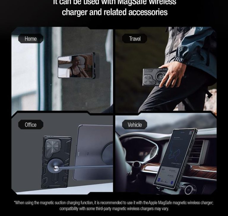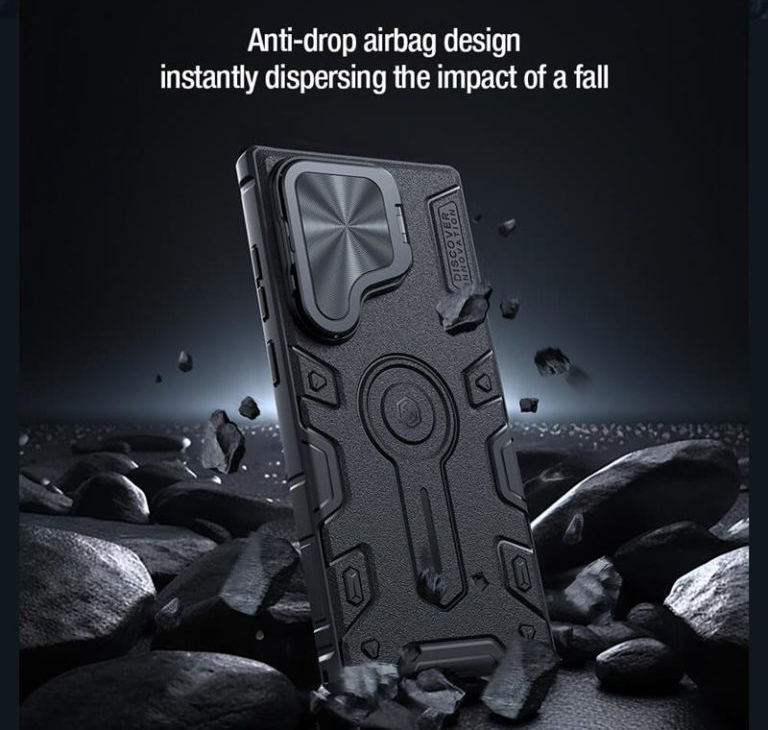 اولین چیزی که در ذهن شما جلوه میکند این است که چگونه میتوانید محافظتی حداکثری را ازگوشی ارزشمندتان به عمل آورید تادر کنار حفظ زیبایی وکارایی،کوچک ترین خطری گوشی موبایلتان تهدید نکند ومهم تر ازهمه اینکه بتوانید در هرمحیطی که دوست داشته باشید،شهر،جنگل یاحتی کوه بدون هیچ نگرانی گوشی خود راکنار خود داشته باشید.نیلکینCamShield Armor Prop Magneticهمان گزینه ای است که برای یک محافظت حداکثری به آن نیازدارید.فرقی نمیکند برای چه فعالیتی و در چه محیطی گوشی همراه خود را نیاز دارید این کاور به هیچ وجه شمارا ناامید نخواهد کرد.طراحی ویژه و جذاب آن امکان استفاده رابرای تمامی سنین وسلیقه ها، پیر یا جوان، خانم یا آقا فراهم کرده است. جنس بدنه این کاور مستحکم از متریال Hard PC پلی کربنات سخت در قسمت پشتی وSoft TPUدر قسمت کناره ها ساخته شده است.این ساختار محافظت فوق العاده ای را برای گوشی همراه شما تضمین میکند،در اثربرخورد یاسقوط کوچک ترین خط وخشی روی بدنه گوشی همراه شما ایجادنخواهد شد وهیچ کثیفی ویا لک واثر انگشتی پشت آن باقی نمیماند.نکته حائز اهمیت طراحی4گوشه این کاور است که باتوجه به امکان ورود ضربه و یاسقوط ازگوشه ها،به شکلی برآمده و بامپر مانند در آمده تا احتمال آسیب دیدگی رابه0%برساند.TPUنرم بکار رفته در دور کاور به ورود وخروج آسان گوشی همراه درکاور کمک میکند وهمچنین محافظتی عالی از دورتادور بدنه به عمل می آورد.تمامی قسمت ها به خصوص دکمه ودرگاه ها نیز تحت پوششند.به شکلی استاندارد و دقیق برش خرده و برآمدگی لبه ها ازتماس مستقیم صفحه نمایش با سطوح صاف جلوگیری میکند و اختلالی برای نصب گلس و محافظ صفحه ایجاد نمیکند.ویژه ترین قسمت کاور محافظ لنز فلزی قرار داده شده درپشت آن است که به شکل پنجره ای باز و بسته میشود وچندین کاربرد اساسی دارد.کاربرد اول آن محافظتی ویژه از آسیب پذیرترین قسمت گوشی موبایل یعنی لنز دوربین است، کاربرد دوم استفاده به صورت یک استند وقرار گیری در زاویه دلخواه است به شکلی کاملا مطمئن ودقیقیه صورت مگنتی چفت میشود ودر صورت تکان های شدید نیز بازنخواهد شد.این قاب بصورت Magnetic یا مغناطیسی طراحی شده است به این معنی که میتوانید بواسطه آن به راحتی گوشی همراه خود را حتی در هنگام داشتن قاب بر روی آن به صورت بی سیم شارژ کنید ویا از اکسسوری های مختلفMagnetic استفاده کنید.