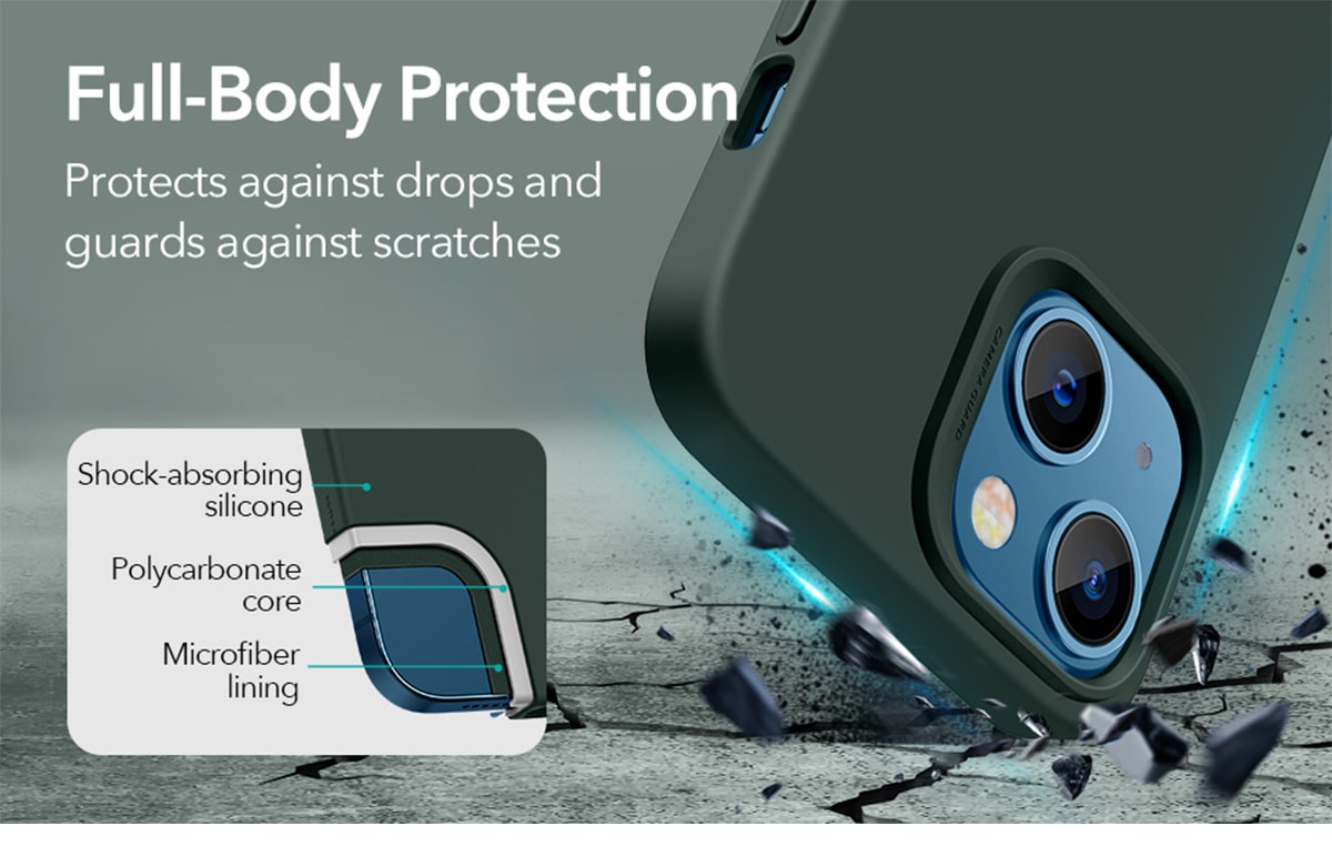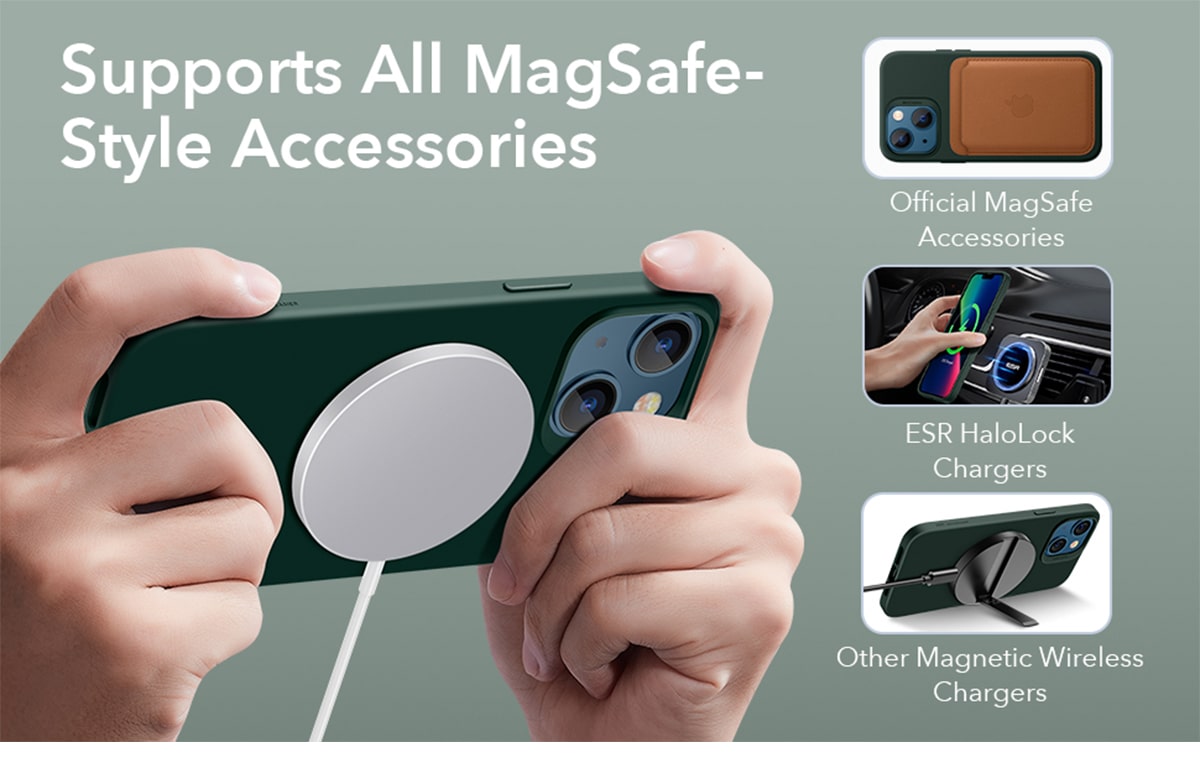قاب ESR Cloud Soft آیفون 13 از متریال سیلیکونی در چند رنگ طراحی و عرضه شده است. این قاب قابلیت مگ سیف دارد و با شارژر وایرلس مگ سیف اپل و سایر لوازم جانبی هایی که دارای آهنربا می باشند، سازگار است. همچنین قاب Cloud Soft دارای استاندارهای نظامی می باشد و کاملا مقاوم به خصوص در گوشه ها برای محافظت از آیفون 13 است.