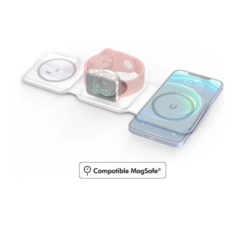 یک شارژر با ایستگاه شارژ آیفون MagSafe، یک نگهدارنده مغناطیسی Apple Watch و یک قسمت ویژه برای Airpods.