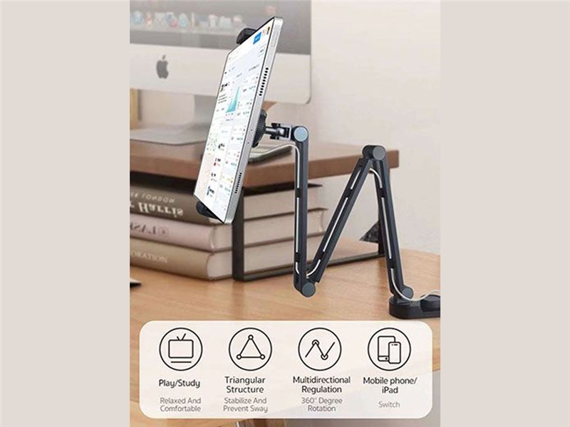 قابل استفاده برای انواع برندهای گوشیموبایل و تبلت طراحی شیار کابل شارژ قابلیت تنظیم زاویه دید در چند جهت دارای بازوهای تاشو ساختاری مقاوم