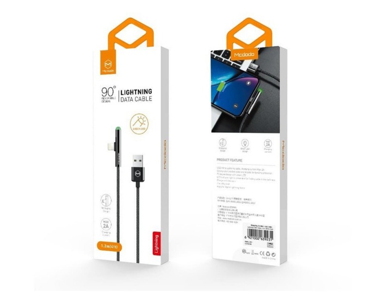 شرکت مک دودو با تمرکز بر اهمیت محافظت هوشمند از باطری موبایل و تبلت، به واسطه تکنولوژی روز دنیا محصولات خود را عرضه مینماید. کابل شارژ 1.8 متری 90 درجه لایتنینگ مخصوص گیمینگ مک دودو باقابلیت انتقال دیتا Mcdodo 90 Degree Gaming Lightning Data Cable 1.8 m یکی از دهها کابل تولید شده توسط شرکت مک دودو میباشد. دارا بودن قابلیت انتقال دیتا و وجود نشانگر LED از ویژگیهای اصلی این کابل است.