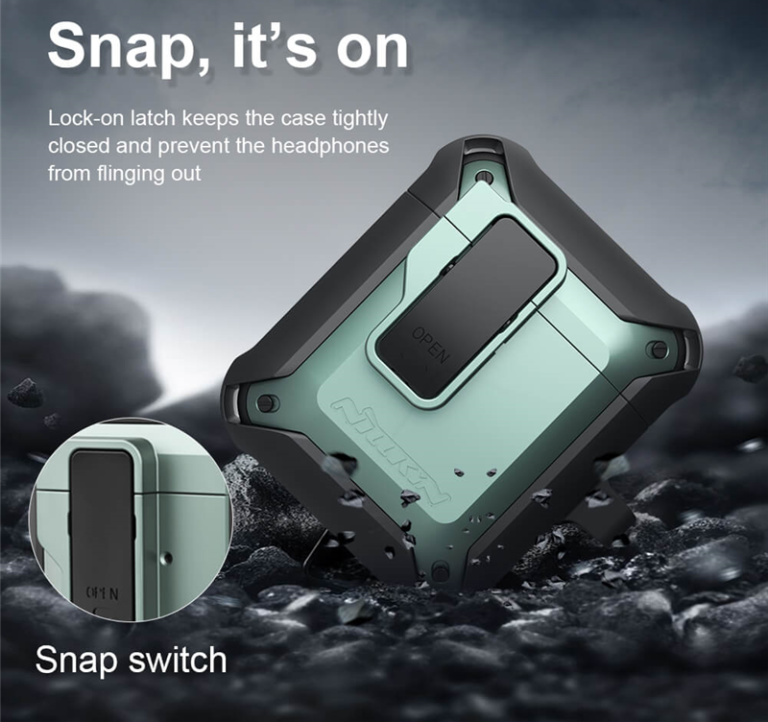 Nillkin Bounce Case که از TPU و PC ساخته شده است، از ایرپادهای شما در برابر ضربه محافظت می کند. در این کیس به وسیله دکمه ای که روی آن قرار داده شده است باز میشود،و بسته شدن آن نیز خیلی آسان و روان انجام میگیرد.. طراحی ضربه گیر چهار گوشه هر گونه اضطراب شما را در مورد هر ضربه و سقوطی از بین می برد؛خیلی خیلی سازگار هست با شارژر های وایرلس و بیسیم.