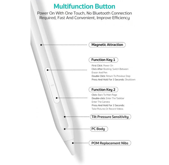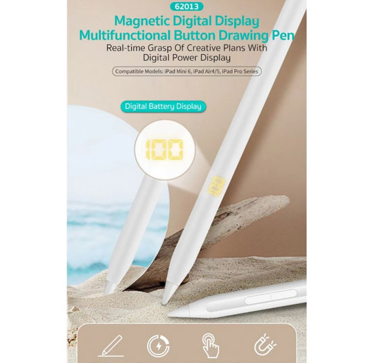 مناسب برای آیپد اتصال مگنتی به آیپد شارژ وایرلس با آیپد نمایش درصد شارژ روی بدنه قلم با 80 دقیقه شارژ 8 ساعت استفاده حساس به فشار