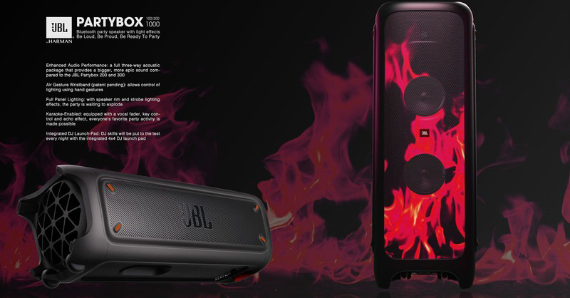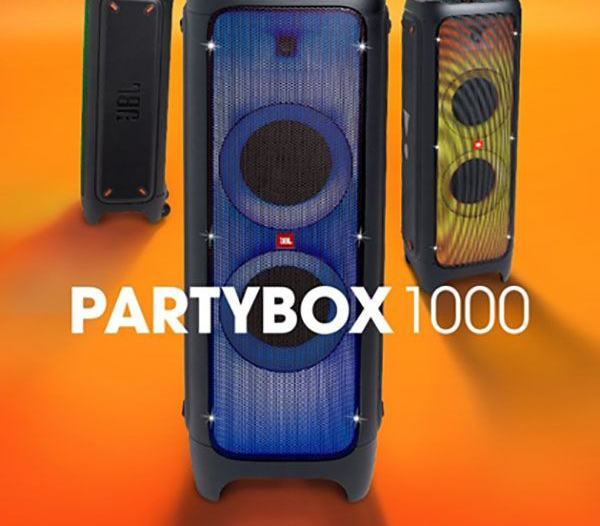 ابعاد پخش کننده خانگی جی بی ال مدل  Party Box 1000 در حدود ۳۹۷*۳۹۰*۱۰۵۰ ۳۹۷*۳۹۰*۱۰۵۰ سانتی‌متر بوده و وزن آن ۳۴۷۰۰ گرم است. توان خروجی این پخش کننده ۱۱۰۰ وات خواهد بود. این اسپیکر حرفه ای دارای پد DJ با قابلیت نواختن درام، کیبورد و پیانو است. این مدل دارای قابلیت Smart DJ و دارای ورودی گیتار و میکروفون است.  برای این مدل یک ووفر ۳۰۴.۸ میلی متری و ۲ میدووفر ۱۷۷.۸ میلی متری در نظر گرفته شده است. تکنولوژی Bass Boost برای کنترل باس اسپیکر به کار می‌رود. این پخش کننده دارای  LED رقص نور بوده که قابلیت تنظیم با ریتم موسیقی در تمام پنل جلویی اسپیکر دارد.  یک پورت USB برای پخش موزیک در این دستگاه وجود دارد. دستبند  Air Gesture با LED هماهنگ با اسپیکر  است. از قابلیت‌های این پخش کننده به  تغییر افکت صدا و رقص نور توسط دستبند و قابلیت کارائوکه می‌توان اشاره کرد. با قابلیت کارائوکه می‌توان یک آهنگ باکلام از یک خواننده را در چند دقیقه به سادگی بی‌کلام کرد و نسخه بی‌کلام و بدون صدای خواننده ی آن را به دست آورد. بنابراین برای افرادی که دوست دارند در جمع‌های خودمانی بهصورت آماتور بخوانند بسیار مناسب است.