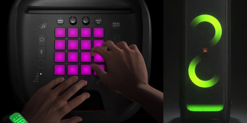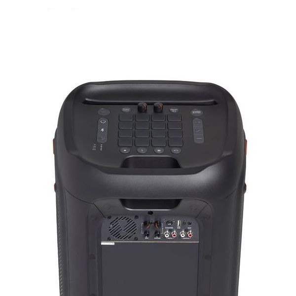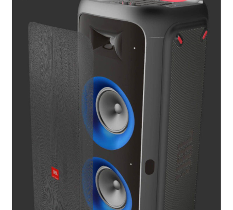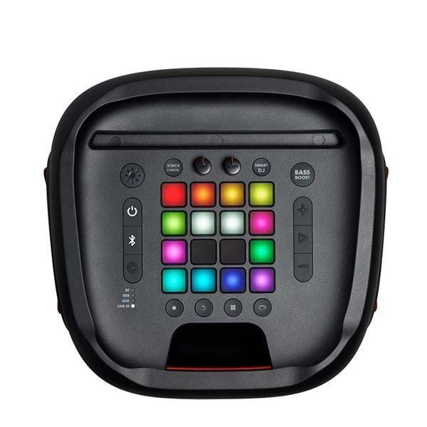 سایر ویژگی هااسپیکر حرفه ای 1100 وات همراه با پد DJ دارای پد DJ با قابلیت نواختن درام، کیبورد و پیانو دارای قابلیت Smart DJ دارای ورودی گیتار و میکروفون یک ووفر 304.8 میلی متری و 2 میدووفر 177.8 میلی متری تکنولوژی Bass Boost برای کنترل باس اسپیکر LED رقص نور با قابلیت تنظیم با ریتم موسیقی در تمام پنل جلویی اسپیکر یک پورت USB برای پخش موزیک دستبند Air Gesture با LED هماهنگ با اسپیکر قابلیت تغییر افکت صدا و رقص نور توسط دستبند قابلیت کارائوکه نوع اتصال بی سیم از طریق بلوتوث و با سیم از طریق AUX دارای خروجی هدفون و ورودی میکروفون نسخه بلوتوث 4.2 دارای ورودی صدا دارای یک ووفر 30.48 سانتی متری و 2 میدووفر 17.78 سانتی متری دارای میکروفون داخلی قابلیت شارژ دستگاه های مختلف از طریق پورت USB پورت ورودی صدا استریو 2RCA پورت ورودی AUX پورت خروجی 3.5 میلی متری صدا پورت خروجی 3.5 میلی متری صدا و دیتا دارای 2 چرخ زیر اسپیکر برای جابجایی راحت تر