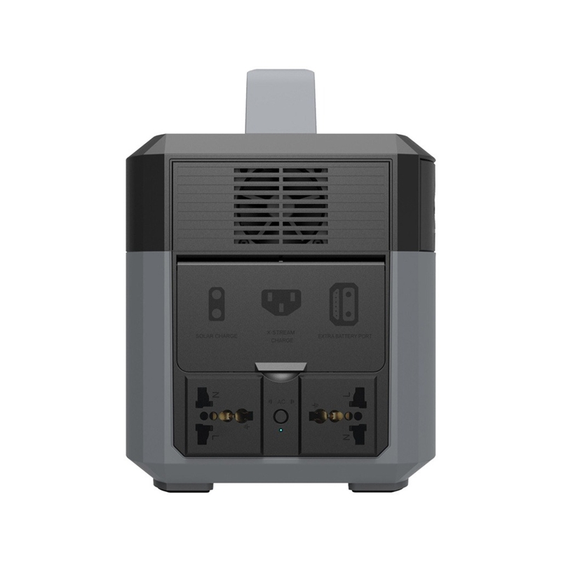 خروجی برق AC از پریز: 2 پریز برق در پشت بدنه این پاوربانک قرار گرفته که میتوانید وسایل مختلفی مثل لپ تاپ و یا انواع وسایل دیگری که مجهز به دو شاخه برق باشند مثل اجاق برقی استفاده کنید. توان خروجی این پریز به شکل اسمی 600 وات است.
