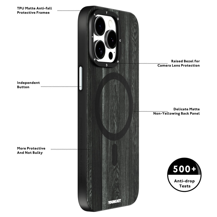 BLACK WOODEN TEXTURE MAGSAFE SERIES YOUNGKIT CASE
