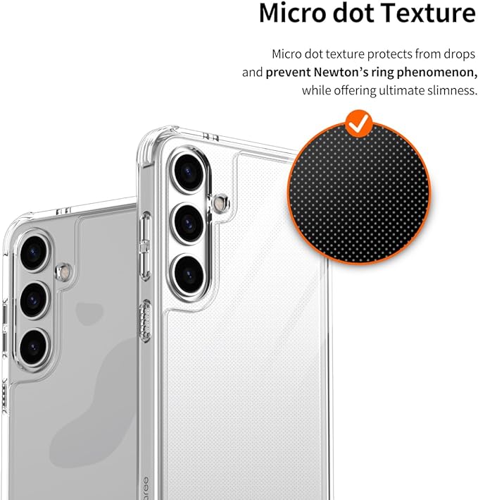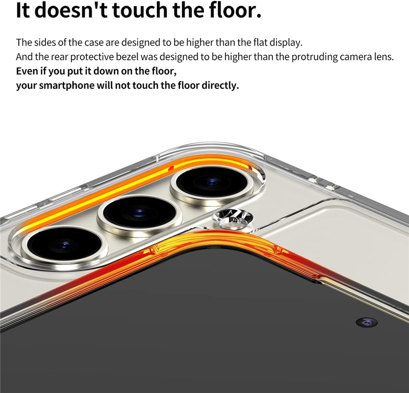 مراقبت از لنز دوربینها، آن هم سامسونگ S24 که لنزهای بزرگی در قسمت پشتی بدنهاش دارد کاملا منطقی به نظر میرسد. قاب سامسونگ S24 Araree Flexield دارای فریمی دور لنزها برای محافظت از دوبین گوشی است. این فریم چند میلی متر از سطح دوربین بالاتر است تا امکان اصابت اجسام را کاهش دهد. بعلاوه برای محافظت از صفحه نمایش لبه های قاب نیز چند میلی متر بالاتر از صفحه نمایش قرار دارد تا حد امکان از وارد شدن ضربه به صفحه نمایش جلوگیری کند.