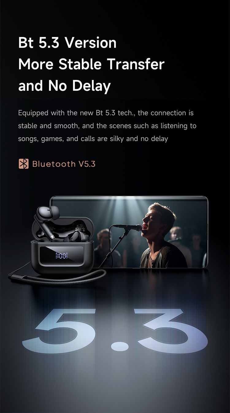 دارای نمایشگر دیجیتال جهت نمایش درصد شارژ باتری کیس و همچنین میزان باتری گوش چپ و راست