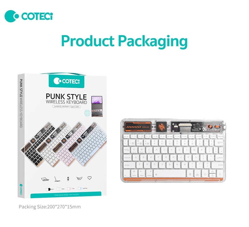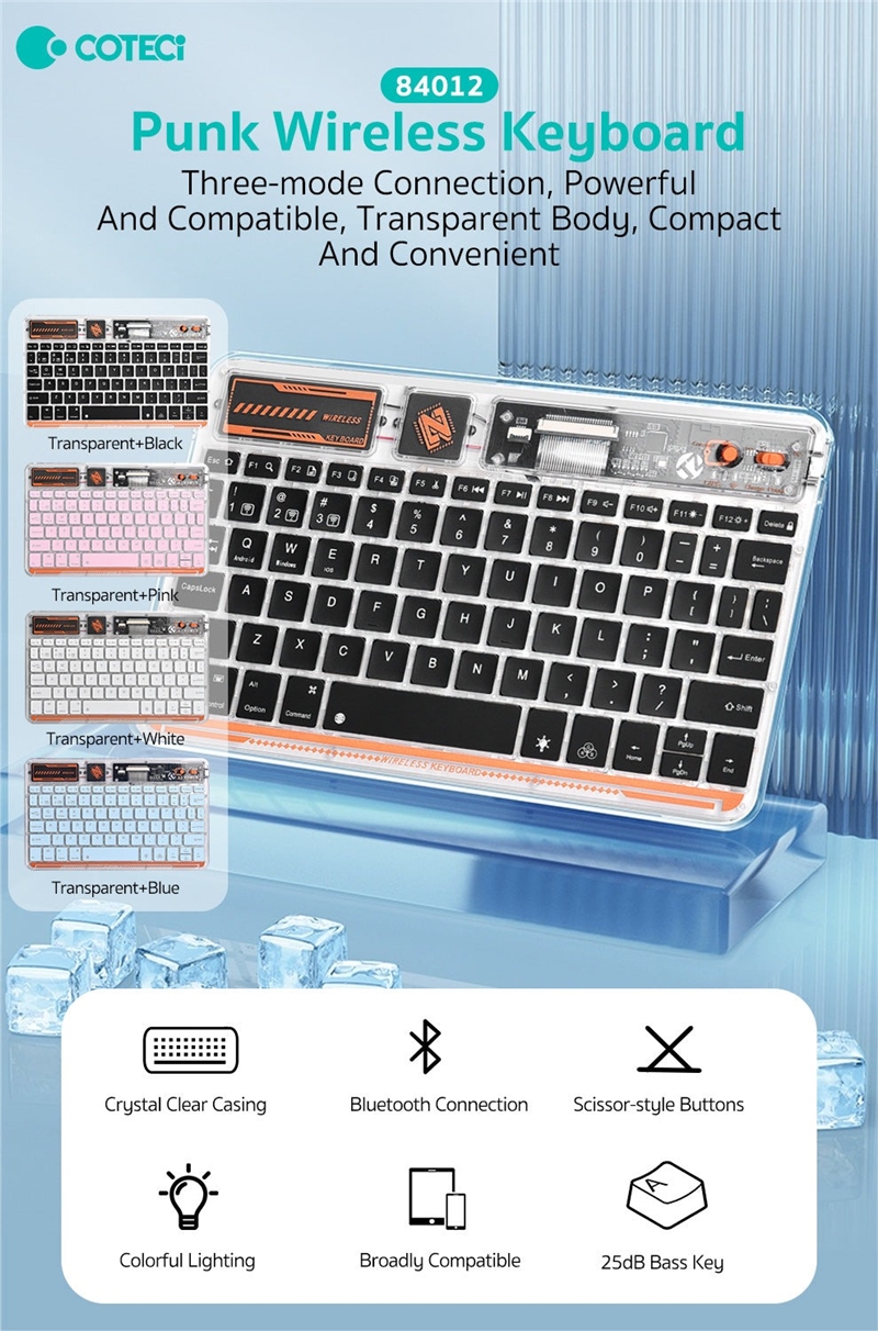 کیبورد بیسیم شفاف کوتسی coteci punk wireless keyboard transparent 84012