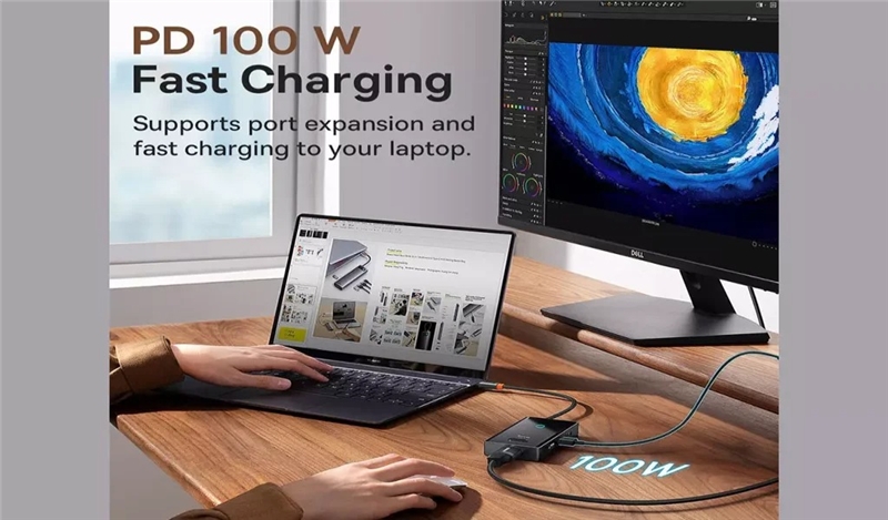 پورت Type C: این هاب دارای یک پورت تایپ سی بوده که از قابلیت PD پشتیبانی می کند. PD یا Power Delivery قابلیتی است که اجازه میدهد شما بتوانید از طریق پورت تایپ سی لپ تاپ خود را با سرعت شارژ کنید.