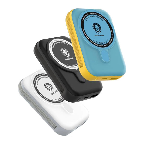 پاوربانک وایرلس 10000 با کابل همراه لایتنینگ گرین لاین Green Lion Monaco Magsafe power Bank GNMGMPB10