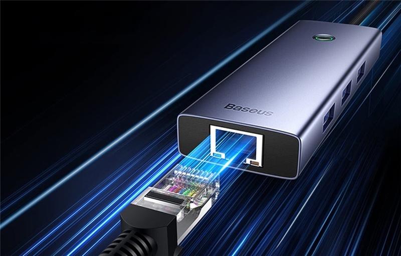 این هاب دارای یک پورت RJ45 با سرعت 1000Mbps است که به کاربران امکان اتصال به شبکههای با سرعت بالا و انتقال دادههای سریع را فراهم میکند.به طور کلی، هاب 4 پورت USB بیسوس Baseus Hub UltraJoy Series با ویژگیهای پیشرفتهای که شما اشاره کردید، یک ابزار چندمنظوره و قدرتمند برای افزایش تعداد اتصالات USB و اتصالات شبکه میباشد که به کاربران امکان انجام کارهای مختلف با سرعت و بهرهوری بالا را میدهد.