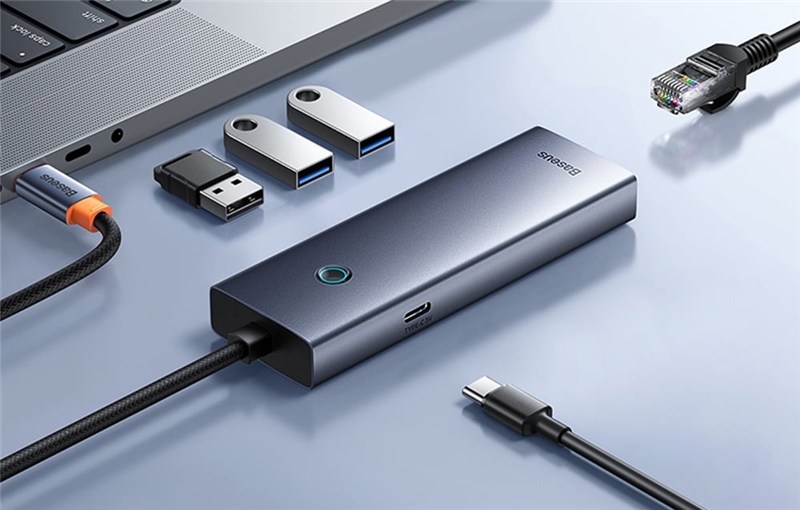 هاب Baseus Hub UltraJoy Series با طراحی زیبا و کوچک، فضای کمی را در میز کار یا محل کار اشغال میکند. این امکان به کاربران اجازه میدهد تا دستگاه را به راحتی در محیطهای مختلف قرار دهند و از زیبایی ظاهری آن لذت ببرند.