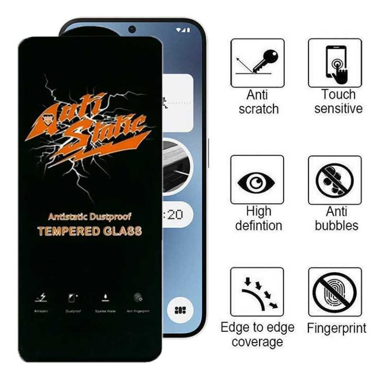 در زمینه محافظ صفحه نمایش،شرکت اپیکوی گلس های مختلف و متنوع طراحی و ساخته است که یکی از مرغوب ترین و با کیفیت ترین گلس های این شرکت گلس Antistatic Dustproof می‌باشد که محبوبیت خاصی بین کاربران دارد. علت این امر مواد اولیه مرغوب، پوشش کامل صفحه نمایش، چسیندگی بسیار بالا و مهم تر از همه خاصیت آنتی استاتیک است که در ادامه توضیح داده می‌شود. گلس Antistatic Dustproof دارای لبه هایی با قوس 2.5D می‌باشد که این امر بسیار دارای اهمیت است. زیرا لبه های گلس دارای منحنی است و به دست یا وسایلی گیر نمیکند که باعث بلند شدن و یا شکستن محافظ صفحه نمایش شود. و همچنین ضخامت این گلس 0.3 میلیمتر میباشد که یکی از مهمترین موارد در طراحی گلس است. این محافظ صفحه نمایش دارای خاصیت آنتی استاتیک است. این ویژگی باعث می‌شود گرد و غبار جذب گلس نشود و به همین دلیل هم نصب خیلی راحتی داشته باشد. محافظ صفحه نمایش اپیکوی مدل Antistatic Dustproof دارای مقاومت بالا در برابر انواع ضربه های ناگهانی است. زیرا این گلس بسیار حرارت دیده و از سختی 9H برخوردار است. این گلس در برابر ضربه سه برابر از گلس های معمولی مقاومتر است. لبه های این محافظ صفحه نمایش به طور ویژه تری ساخته شده تا از شکستگی های لبه محافظ صفحه نمایش و LCD محافظت کند و از خرد شدگی جلوگیری میکند. در کنار داشتن کیفیت و وضوح HD این گلس باعث می‌شود به راحتی انگشت کاربر روی سطح گلس حرکت کند و هیچگونه مشکلی در این زمینه نداشته باشد. سطح محافظ صفحه نمایش اپیکوی مدل Antistatic Dustproof چربی گریز و آب گریز است. در نتیجه قطرات آب، لکه‌های چربی و آلودگی یا اثر انگشت روی آن جا نمی‌اندازند و ردشان باقی نمی‌ماند. همواره صفحه‌ای تمیز خواهید داشت که از کار با آن لذت می‌برید و یا در صورت ایجاد لکه با یک دستمال ساده کاملا به حالت اول و شفاف خود باز میگردد. این گلس طوری طراحی و ساخته شده که مانع از انعکاس نور در فضاهای باز و محیط های روشن است که باعث محافظت بیشتر از چشم کاربر میشود و از خستگی چشم جلوگیری می‌کند، هیچ گونه کاهشی بروی حساسیت تاچ نمایشگر گوشی کاربر ایجاد نمیشود و دارای قابلیت نصب اسان است.