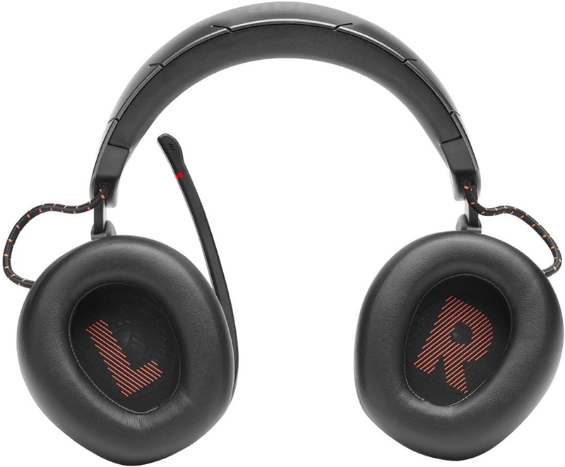 در هدست JBL Quantum 800 در پشت هر گوش، یک صفحه دایره‌ای‌شکل با آرم JBL وجود دارد که هنگام روشن بودن، به نورپردازی RGB مزین می‌شود. این نورها قابل‌تنظیم بوده و کاربران می‌توانند از طریق نرم‌افزار اختصاصی این هدست آن را به‌دلخواه خود تنظیم کنند. کاپ گوش چپ، شامل یک میکروفون هم شده است. این میکروفون تاشو نیست؛ اما در سمت بالا و پایین تنظیم می‌شود. پایین‌بودن این میکروفون به معنی فعال‌بودن آن و بالابودن این میکروفون به معنی خاموش بودن آن است. گوش سمت راست این هدست دربرگیرنده کلید پاور و دکمه جفت‌شدن بلوتوث بوده است. دیگر پورت و دکمه‌ها در کاپ سمت چپ هدست تعبیه شده‌اند. این موارد عبارت‌اند از: پورت شارژ USB، کانکتور جک 3.5 میلی‌متری صدا، دکمه بی‌صدا کردن میکروفون، اسلایدر تنظیم صدا، اسلایدر تعادل بازی/چت و دکمه روشن‌کردن حذف نویز.