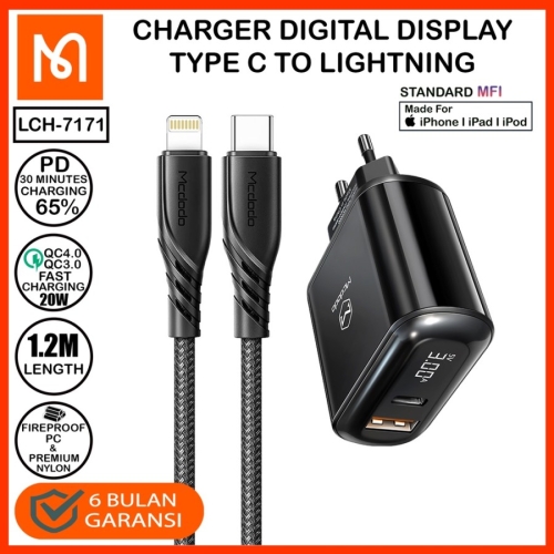 شارژر 20W مک دودو Mcdodo مدل CH-7171 بهمراه کابل لایتنینگ Type C