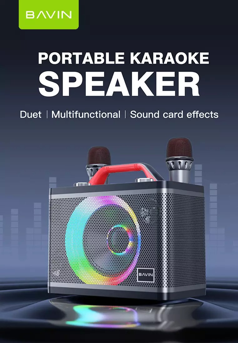 اسپیکر بلوتوث Bavin BM10 دارای یک وُفر 5.25 اینچی قوی و دو توییتر 40 میلیمتری می باشد.علاوه بر پخش با کیفیت موسیقی اسپیکر بلوتوث Bavin BM10 دارای دو میکروفون است که با بلوتوث به اسپیکر متصل شده و می توان از آن برای خواندن و کارائوکه نیز استفاده کرد.