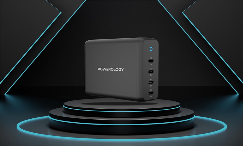 شارژر دیواری 165 وات پاورولوژی (Powerology 165W x4 USB-C GaN Charger) با فناوی GaN یک آداپتور کارآمد است که از طریق یک کابل برق 1.5 متری 3 پین UK به پریز برق متصل می شود و ورودی آن با ولتاژ 100 تا 240 ولت سازگار است.