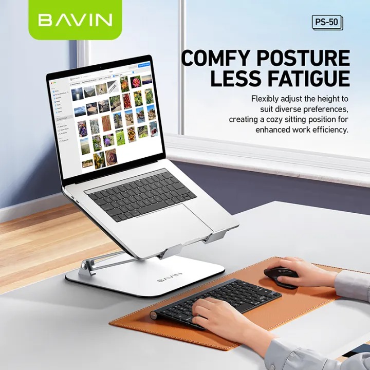 یکی از مشکلات ما در هنگام استفاده از لپ تاپ ارتفاع و زاویه مناسب لپ تاپ است. شرکت باوین با تولید استند لپ تاپ باوین PS-50 این مشکل را حل کرده است؛ این استند علاوه بر امکان نگه داشتن لپتاپ در ارتفاع و زاویه مناسب، فضایی در زیر لپ تاپ ایجاد می کند که به تهویه هوای گرم لپتاپ و خارج شدن آن کمک خواهد کرد.