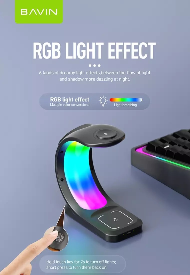 استند و شارژر وایرلس چندکاره باوین Bavin PC1071 توان 15 وات