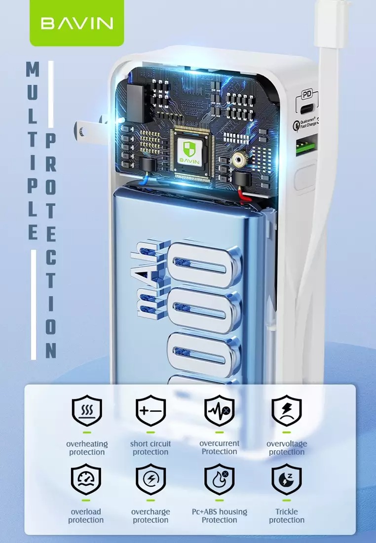 پاوربانک باوین Bavin PC018S به گونه ای طراحی شده که از تجهیزات در حال شارژ در برابر شارژ، جریان ،ولتاژ و دمای بیش از حد و همچنین اتصال کوتاه حفاظت می کند.