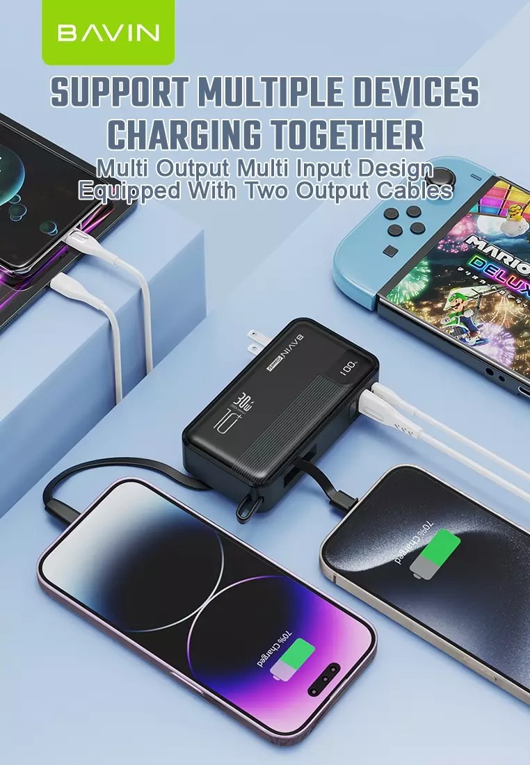 با استفاده از پاوربانک باوین PC018S می توان چندین دستگاه را به طور همزمان شارژ کرد. این محصول برای استفاده هم بیرون خانه و هم درون خانه مناسب است.