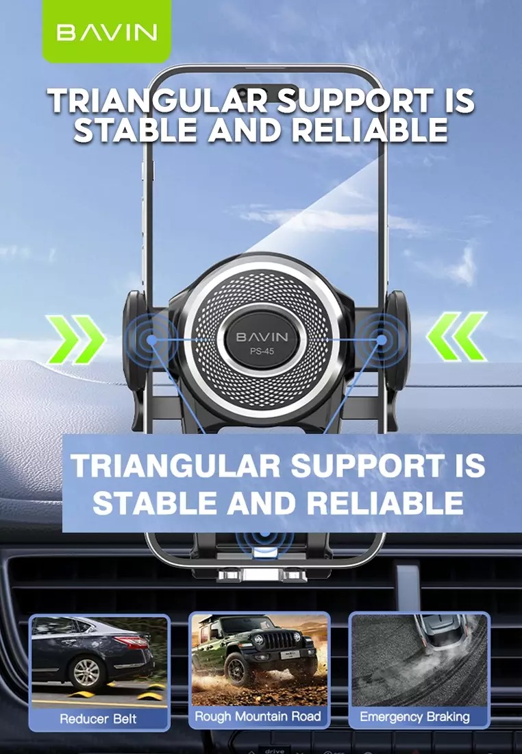 هولدر Bavin PS-45 برای گوشی های از ارتفاع 4.7 تا 7.2 اینچ می تواند استفاده شود و همچنین از نظر عرضی اندازه های مختلف از تلفن های همراه را پشتیبانی می کند.