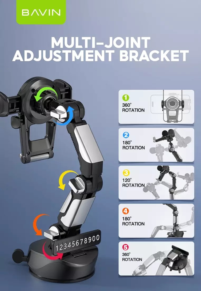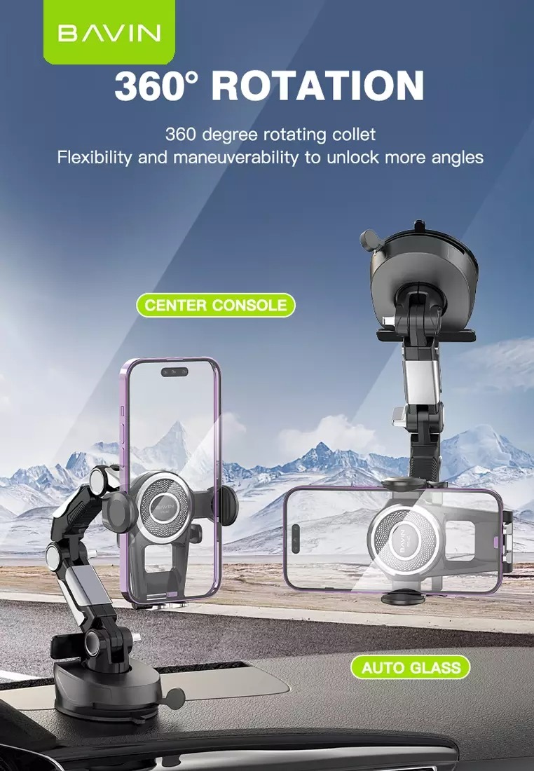 هولدر باوین PS-45 دارای یک پایه قابل چرخش است. شما به راحتی میتوانید بازوی این هولدر Bavin PS-45 را 360 درجه بچرخانید و در مکان مورد نظر خود قرار دهید. شما میتوانید بازوی این هولدر را به میل خود به سمت بالا یا پایین حرکت دهید . در نتیجه همانطور که در تصاویر گالری نیز مشخص است، میتوانید گوشی را در مکانهای متفاوتی نسبت به محل نصب هولدر استفاده کنید. همچنین شما میتوانید به میل خود گوشی را به صورت افقی یا عمودی روی هولدر باوین PS-45 قرار دهید. همچنین از محل مفصل این هولدر نیز میتوانید محل قرارگیری گوشی را بالا و پایین کنید.