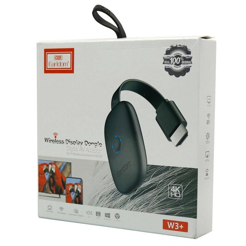 دانگل تلویزیون بی سیم ارلدام ET-W3 Plus وسیله ای کاملاً جدید است که کمک می کند تا تصاویر و ویدئو از دستگاهی که دارای LCD کوچک روی صفحه LCD بزرگ مانند تلویزیون ، مانیتورهای LCD خودرو یا از لپ تاپ به پروژکتور است ، منعکس شود. همه چیز را می توان همانطور که توسط دستگاه نشان داده شده است. شما با استفاده از این دانگل می توانید محتوای تلفن هوشمند یا تبلت خود مانند تصاویر، ویدئوها، موسیقی و ... را روی تلویزیون با کیفیت 4K HD به صورت بی سیم پخش کنید و علاوه بر این موارد می توانید در نمایشگری بزرگتر به وبگردی بپردازید.