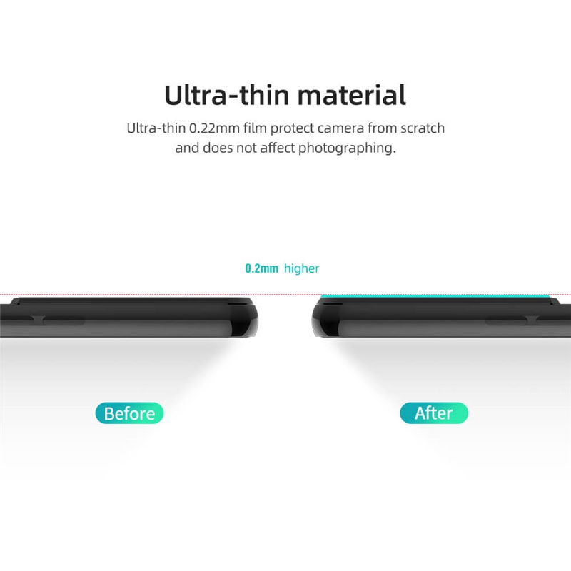 محافظ لنز دوربین Nillkin InvisiFilmز جنس شیشه بودهو ساختاری محکم با ضخامتی معادل 0.22 میلی متر دارد. این محافظ لنز از دو لایه ی اصلی تولید شده که این دو لایه خود تشکیل شده از 6 لایه و سطح هستند که از جمله ی این لایه ها اولین لایه ضد اثر انگشت ، دومین لایه Anti Wear ضد اصطکاک و ساییدگی ، سومین لایه ضد خط و خش ، چهارمین لایه ی اصلی AR ، پنجمین لایه کاملا شفاف و ضد اشعه و ششمین لایه ی چسبنده ی لنز می باشد.