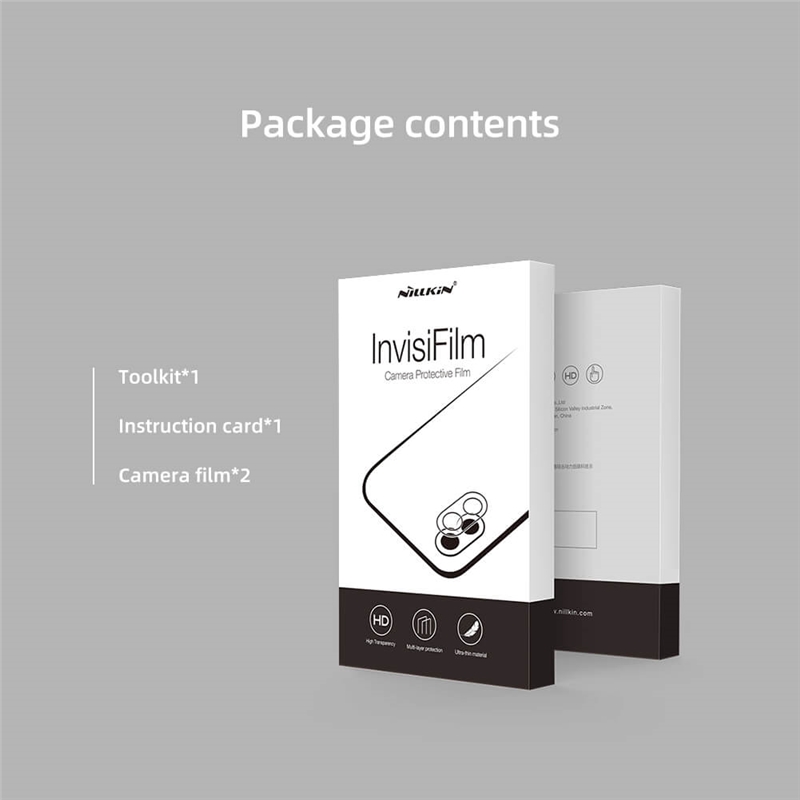 Samsung Galaxy S22 Nillkin InvisiFilm Camera Protector در ابتدا لازم است که بگوییم در جعبه ی آن دو عدد محافظ لنز و موارد مورد نیاز برای نصب قرار دارد،وجود دو عدد محافظ قطعا خرید این محصول را با توجه به امکاناتش به صرفه تر می سازد.